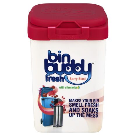 Berry blast. With citronella. Makes your bin smell fresh and soaks up the mess. Up to 30 applications. www.challs.com. Made in UK.