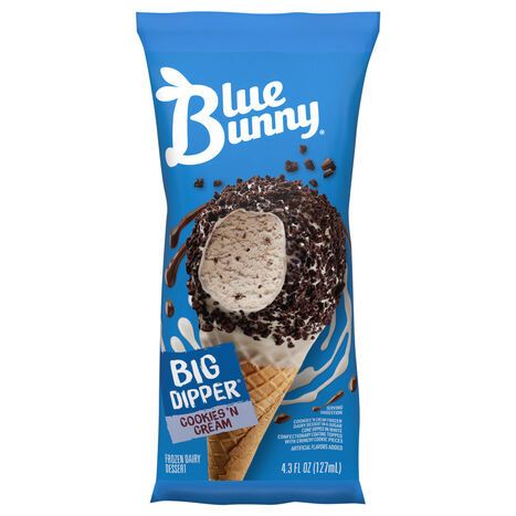 Blue Bunny Frozen Dairy Dessert, Cookies 'N Cream, Big Dipper - 4.3 Fluid Ounces