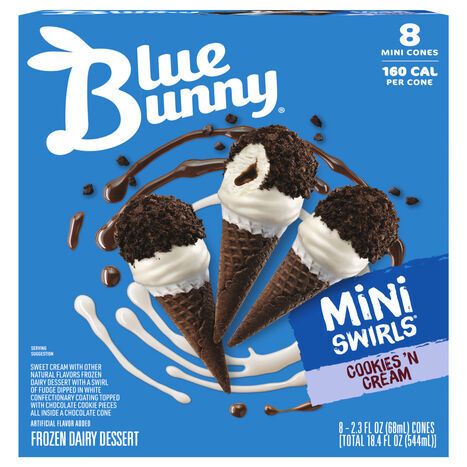 Blue Bunny Frozen Dairy Dessert, Cookies'n Cream - 8 x 2.3 Fluid Ounces