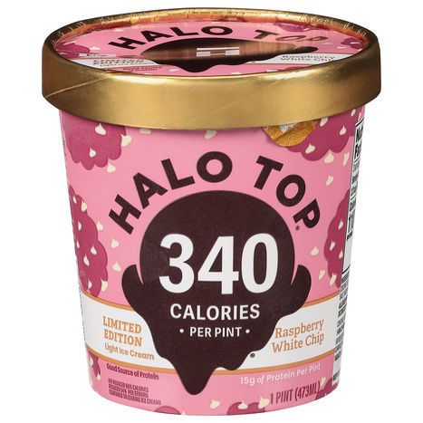 Seasonal flavor. Contains 60% fewer calories than regular ice cream. Contains 90 calories compared to 225 calories in regular ice cream. 360 calories per pint. Good source of protein. Let's not rush this. I need time to soften up. You might notice that Halo Top sometimes freezes a little harder-and you're right. If you're wondering why, take a look at the sugar & fat numbers to the left. Just give me a couple of minutes on the counter of minutes on the counter before you dig in. We all know the best things take time. Instagram. Facebook. Twitter. (hashtag)halotop. www.halotop.com.