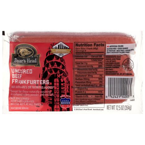 Boar's Head Frankfurters, Beef, Uncured - 12.5 Ounces