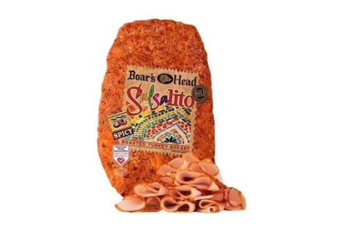 Inspired by the rich food culture of the American Southwest, Boar’s Head Bold® Salsalito® Turkey Breast is an enchantment of flavors. Coated with a spicy salsa of jalapeño peppers, onions, sundried tomatoes and cilantro, each slice delivers southwestern flair. Coated With: Red and Green Jalapeño Peppers, Onion, Salt, Paprika, Sun Dried Tomatoes, Garlic, Spice, Cilantro and Natural Flavorings.