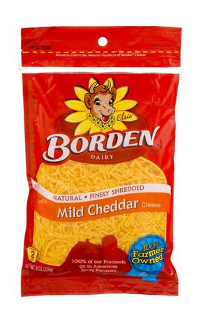 Borden Finely Shredded Cheese, Mild Cheddar - 8 Ounces