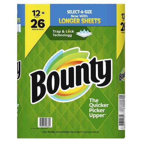 Bounty Select-A-Size Paper Towels, White, 12 Rolls = 26 Regular Rolls