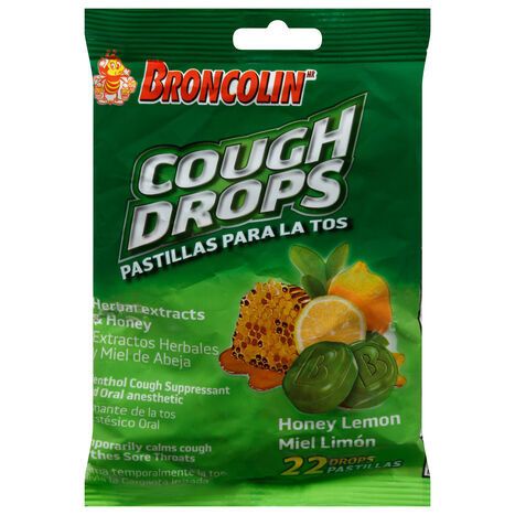 Broncolin Cough Drops, Honey Lemon - 22 Drops
