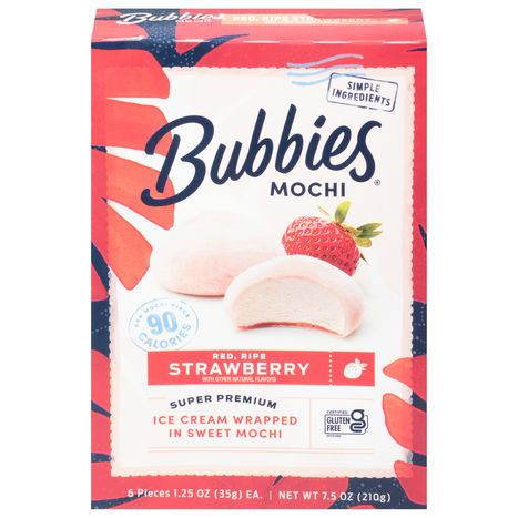Bubbies Mochi, Red, Ripe Strawberry, Super Premium - 6 x 1.25 Ounces