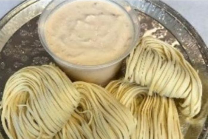 4 servings of Fresh Linguine. 16 oz. Tomato Alfredo Sauce. Makes 4 large servings. Fresh pasta can be frozen and sauce can be refrigerated up to 7 days or put in freezer.