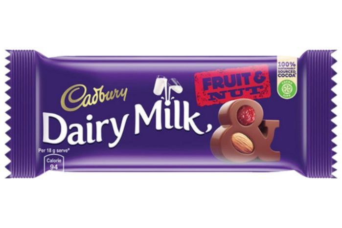 Cadbury Fruit and Nut Chocolate Bar combines the creamy taste of Cadbury`s milk chocolate with crunchy nuts and chewy fruity raisins.