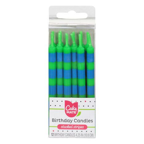 Cake Mate Birthday Candles, Stacked Stripes, 4.25 Inch - 12 Candles