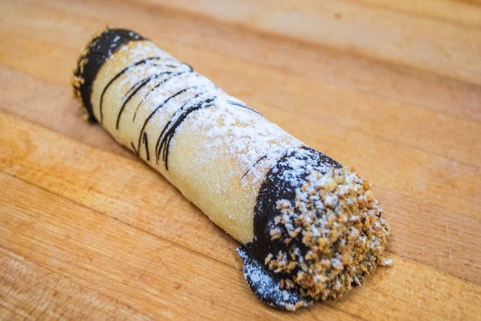Shortbread cookie dough filled with vanilla custard and dipped in chocolate