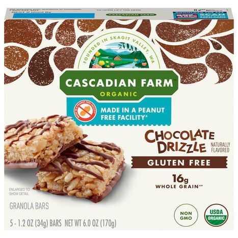Cascadian Farm Organic Gluten Free Chocolate Drizzle Granola Bars - 5 x 1.2 Ounces