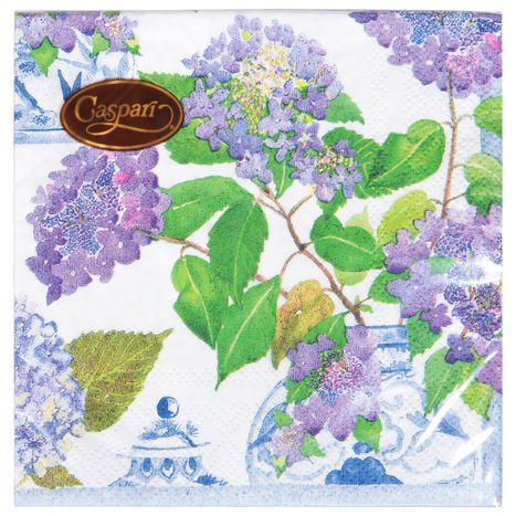 Caspari Napkins, Hydrangeas and Porcelain, Triple-Ply - 20 Napkins