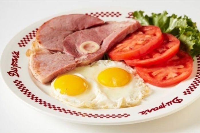 We serve "EXTRA LARGE AA" certified eggs, cracked fresh. Pan-fried in pure butter with the best quality meats. Served with house-made golden hashed browns and hot buttered toast OR Du-Par's bakery muffin.