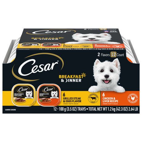 Cesar Breakfast & Dinner Grilled Steak & Eggs Flavor/Chicken & Liver Recipe Dog Food - 12 x 3.5 Ounces
