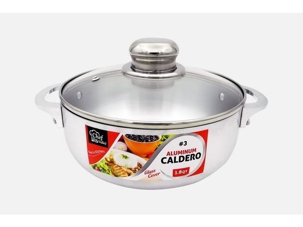 Chef Valley Glass Cover Aluminium No. 3 Caldero with Lid - 1.8 Quarts