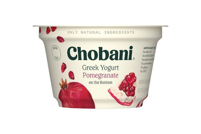 Chobani Yogurt, Greek, Nonfat, Pomegranate on the Bottom - 5.3 Ounces