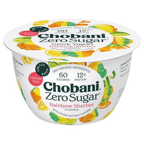 Chobani Yogurt, Greek, Nonfat, Zero Sugar, Rainbow Sherbet Flavored - 5.3 Ounces