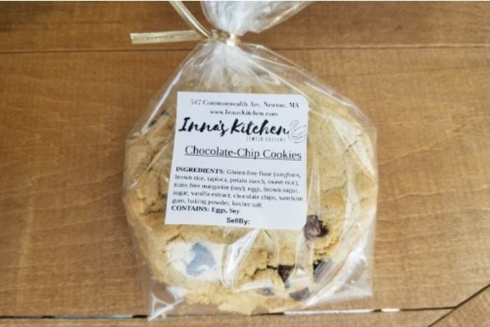 Ingredients: Gluten-free flour blend(sorghum, brown rice, tapioca, potato starch, sweet rice), trans-free margarine (soy), eggs, brown sugar, sugar, vanilla extract, chocolate chips, xanthum gum, baking powder, kosher salt.