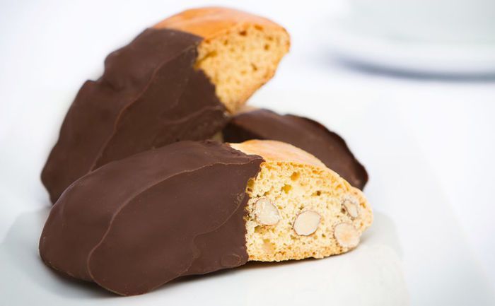 Half-Dipped Italian Almond Biscotti in Dark Chocolate