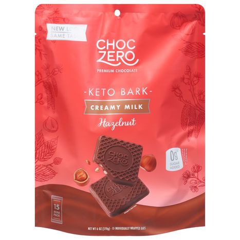 ChocZero Keto Bark, Hazelnut, Creamy Milk, 15 Mini Pack - 15 Individual Bars