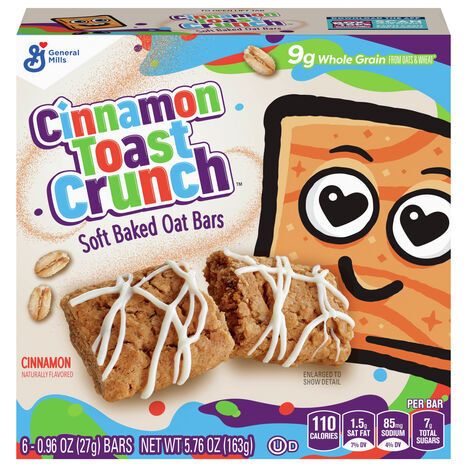 Naturally flavored. 9 g whole grain from oats & wheat (9 g whole grain per serving. At least 48 g recommended daily). Per Bar 110 calories; 1.5 g sat fat (7% DV); 85 mg sodium (4% DV); 7 g total sugars. Ingredients derived from a bioengineered source. Learn more at Ask.GeneralMills.com. Ask.GeneralMills.com. generalmills.com. how2recycle.info. We welcome your questions and comments generalmills.com; 1.800.231.0308. Download the app. Box Tops for Education: Scan your receipt. Earn cash for schools. Certified 100% recycled paperboard. Carbohydrate Choices: 1. Product of Canada.
