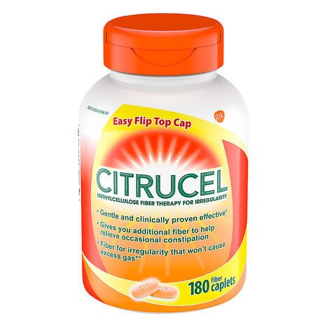 Active Ingredients: In Each Caplet: Methylcellulose (a Non-Allergenic Fiber) (500 mg). Purpose: Bulk-Forming Fiber Laxative. Inactive Ingredients: Crospovidone, Dibasic Calcium Phosphate, FD&C Yellow 6 Aluminum Lake, Magnesium Stearate, Maltodextrin, Povidone, Sodium Lauryl Sulfate.
