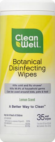 CleanWell Disinfecting Wipes, Botanical, Lemon Scent - 35 Wipes