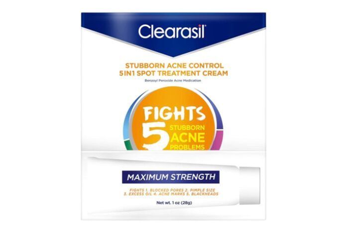 "Clearasil® Stubborn Acne Control 5in1 Spot Treatment Cream treats problem areas fast, visibly reducing redness and pimple size in as little as four hours. Scientifically formulated with maximum-strength medication, Stubborn Acne Control 5in1 Spot Treatment Cream penetrates your pores