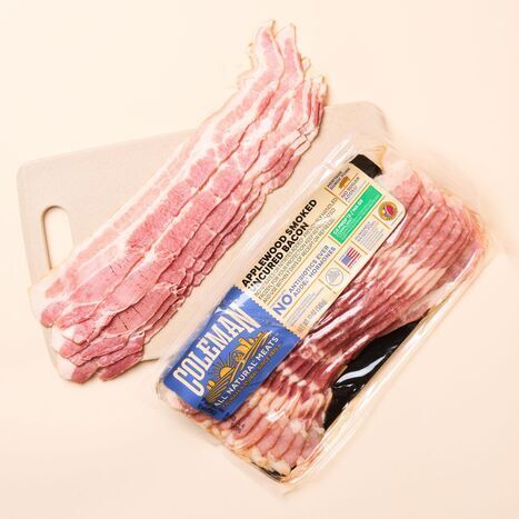 Since 1875, Coleman Natural has been produce all-natural fresh and prepared meats sourced from American farmers. This Applewood Smoked Uncured Bacon contains no added sugar and is made from 100% pork raised in the USA without antibiotics or added hormones. Flavored with just celery powder and sea salt and smoked over applewood, this bacon makes a delicious addition to weekend breakfast spreads or homemade BLTs.