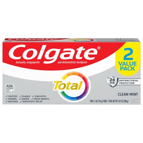 Colgate Toothpaste, Anticavity, Antigingivitis and Antisensitivity, Clean Mint, 2 Value Pack - 2 x 5.1 Ounces
