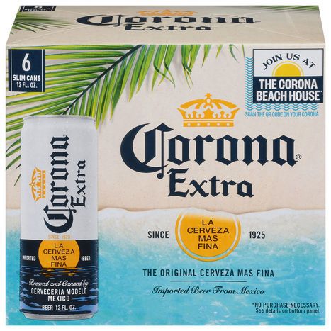 Corona Extra Beer - 6 x 12 Fluid Ounce Cans