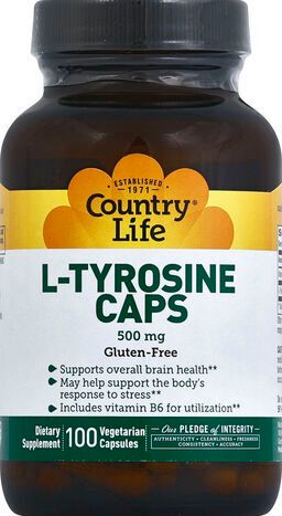 Country Life L-Tyrosine Caps, 500 mg, Vegetarian Capsules - 100 Capsules