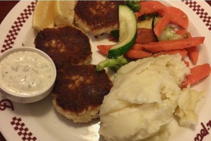 Lump crab meat mixed with spices and herbs, lightly breaded and served with house-made tartar sauce.