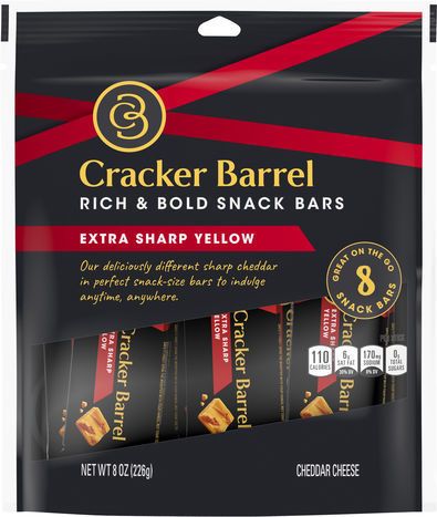 Cracker Barrel Cheese, Cheddar, Extra Sharp Yellow - 8 Snack Bars