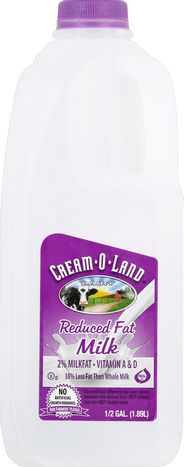 Cream O Land Milk, Reduced Fat, 2% Milkfat - 0.5 Gallons