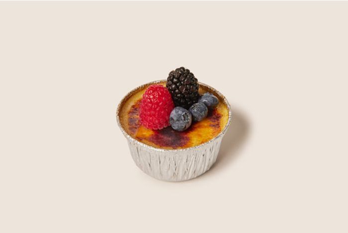 Perfect, classic crème brûlée. A rich vanilla custard with a crackling burnt sugar top and fresh blueberries, raspberries, and blackberries. Gluten-free.