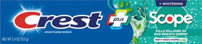 Crest Toothpaste, Fluoride, Anticavity, Minty Fresh Striped, + Whitening, Scope - 5.4 Ounces