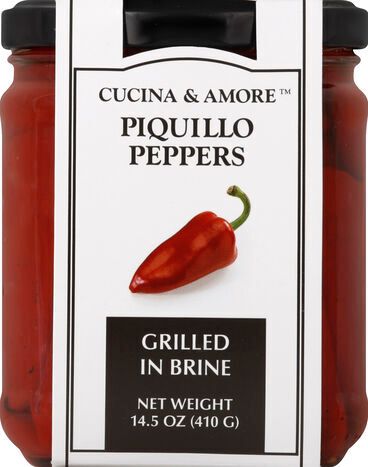 Cucina & Amore Piquillo Peppers, Whole, Grilled in Brine - 14.5 Ounces
