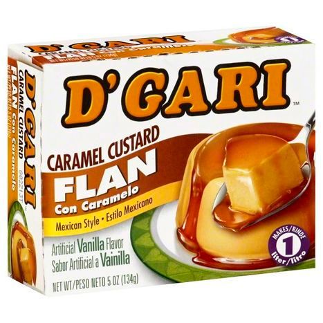 Custard: Sugar Carrageenan Artificial Vanilla Flavoring Sucralose Yellow 5 Red 40 Acesulfame Potassium Caramel: Sugar and Water