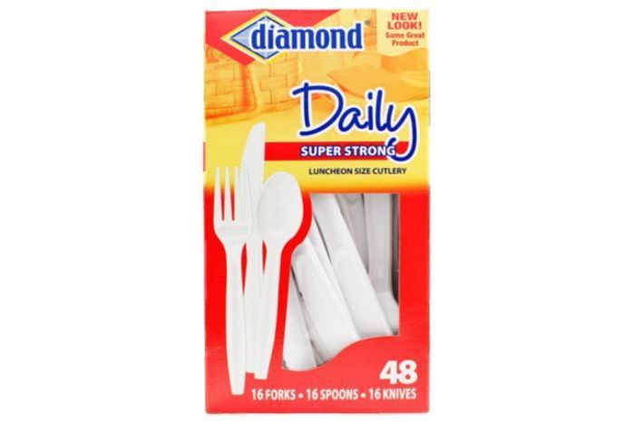Extra Strong Spoons, Forks & Knives (48 Count) luncheon size cutlery, bigger and stronger than the average.