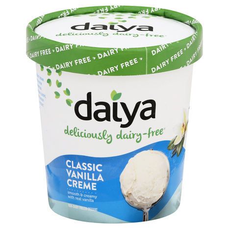 Smooth & creamy with real vanilla. Dairy free. Deliciously dairy-free. Dairy, soy & gluten free. Vegan. Non GMO Project verified. nongmoproject.org. Made with coconut cream. Plant based. www.daiyafoods.com. Questions or Comments? 1 (877) 324-9211.