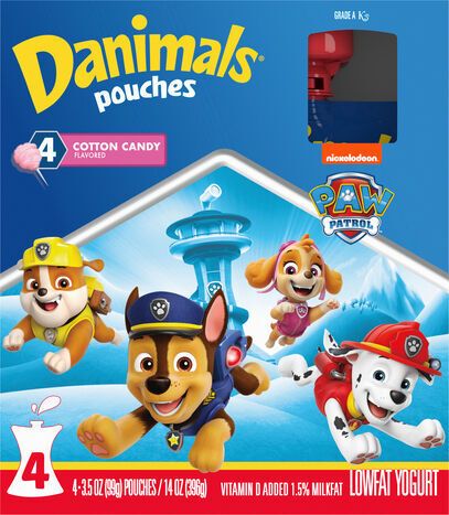 Danimals Yogurt, Lowfat, Paw Patrol, Cotton Candy Flavored - 4 x 3.5 Ounces