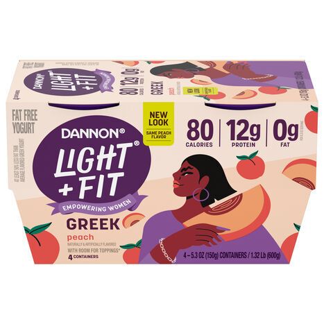 Dannon Fat Free Greek Peach Yogurt - 4 x 5.3 Ounces