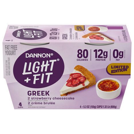 Dannon Fat Free Greek Strawberry Cheesecake/Creme Brulee Yogurt - 4 x 5.3 Ounces
