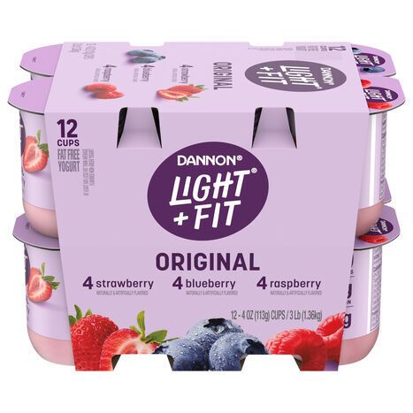 Dannon Fat Free Original Strawberry/Blueberry/Raspberry Yogurt - 12 x 4 Ounces