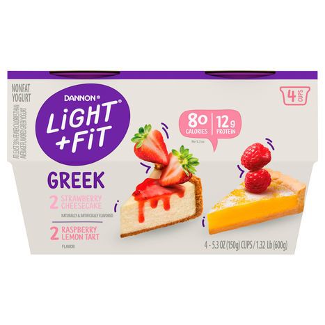 Dannon Yogurt, Nonfat, Greek, Strawberry Cheesecake/Raspberry Lemon Tart - 4 x 5.3 Ounces