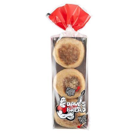 Dave's Killer Bread makes tasty breads and other baked goods and is a proud Second Chance Employer, hiring the best candidate for a role regardless of their criminal history. These English muffins are made without bleached flours or high fructose corn syrup, and pack in five super grains: quinoa, spelt, rye, millet, and barley. With their signature crackly butter-catching craters, these make for a deliciously simple breakfast when slathered with just butter and fruit preserves. Use within 7 days after thawing Water, Organic Wheat Flour, Organic Whole Wheat Flour, Organic Whole Wheat Meal, Organic Grain Blend (Organic Barley Flour, Organic Rye Flour, Organic Spelt Flour, Organic Millet Flour, Organic Quinoa Flour), Contains 2% Or Less Of Each Of The Following: Organic Cane Sugar, Organic Wheat Gluten, Sea Salt, Organic Malted Barley Extract, Yeast, Organic Vinegar, Organic Cultured Wheat Flour, Organic Expeller Pressed Canola Oil, Organic Maltodextrin, Organic Cultured Dextrose, Citric Acid, Ascorbic Acid, Enzymes, Organic Cultured Wheat Flour (Organic Wheat Flour, Organic Vinegar, Natural Flavor).