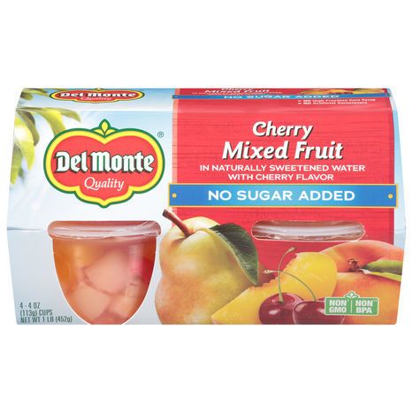 Del Monte Cherry Mixed Fruit, No Sugar Added - 4 x 4 Ounces