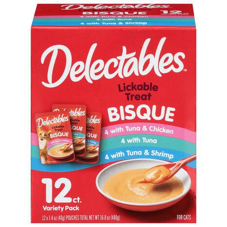Delectables Lickable Treat With Tuna & Chicken/With Tuna/With Tuna & Shrimp Bisque Variety Pack - 12 x 1.4 Ounces
