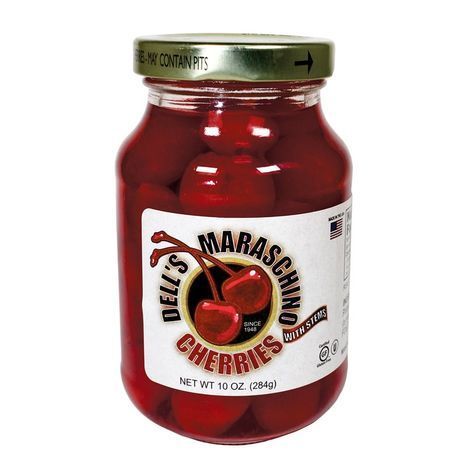 Dell's Maraschino Cherries with Stem - 10 Ounces